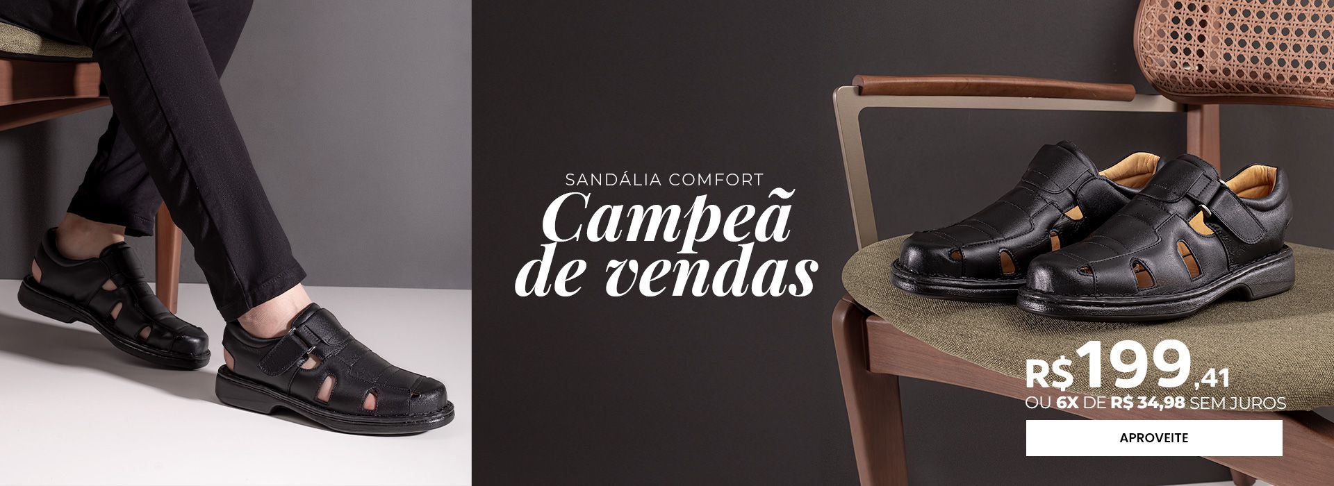 Sandália Comfort Ransterine Masculino em Couro PretoVer Produto